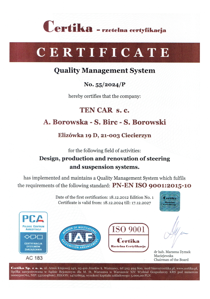 HOME PRODUKCJA REGENERACJA SERWIS KATALOG CERTYFIKATY PROJEKTY UNIJNE INFO